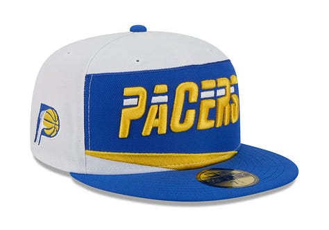 Indianapolis is a basketball city once more, anchored by Caitlin Clark and Tyrese Haliburton — two of the most virtuosic and annoying young stars in their respective leagues — and this loud, unmissable hat reflects that revived spirit of Reggie Milleresque exasperating dominance.