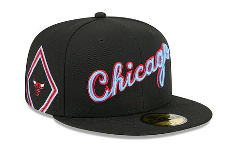 I think the disproportionately large side-panel design unbalances what’s otherwise an appealingly clean hat. That said, who am I to question the Bulls’ decision-making? I wouldn’t have made these design choices, but I also wouldn’t have bet on franchise player(?) Josh Giddey, so what the fuck do I know?