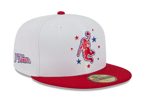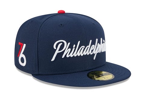 This hat is boring, ok? But my feeling, as a fan, is: who cares? Elsewhere on neweracap dot com, you can purchase a hat based on the Sixers’ 2025-2026 Hardwood Classic uniform, which features the Iverson-era wordmark that is among the best and toughest logos in all of sports history. So what I’m saying is, if the Hardwood Classics hat is playing at an MVP level, maybe all we need from the City Edition hat is 19-7-5 in 25 minutes a night with no back-to-backs? Right? RIGHT?!