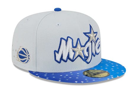 The Magic have struggled on offense this year, but, credit to them: this is an offensive hat. And it’s offensive, in part, because it befouls the legendary wordmark of Shaq and Lil’ Penny with a brim that looks like it’s a plastic shopping bag from the Disney Store.