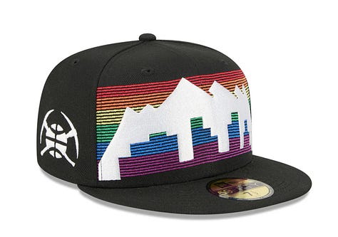 The Nuggets’ original Mutumbo-era rainbow skyline logo should be installed as stained glass windows in the Ball Arena. It’s a logo so legendarily good that even this pixelated modernization is a God-Mode hat design. I think I’d prefer if the hat were blue, but, when you’ve got something that special at the center, it doesn’t really matter what you put around him. Around it. I’m speaking metaphorically about Nikola Jokic.