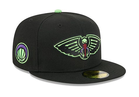 Man, I love when the Pels get spooooky. That menacing, devil-eyed pelican’s got bones dripping in ectoplasm! He looks like he just flew out of the transformation sequence in The Princess and the Frog. The thematic connection here is that the 2025-2026 New Orleans Pelicans — and their fans — are in Hell.