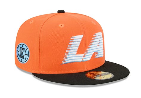 This big logo is great as a contrast to the Clips’ recent rebrand, which has all the panache of a Canva template for a nautical themed birthday party invitation. The speed and youthfulness of this hat is something for the aging Clippers to Aspire to.