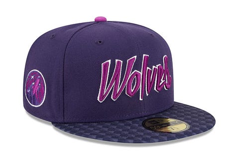 Anthony Edwards is, by a country mile, the coolest current NBA player, and the Wolves, during his tenure, have largely done a good job of matching his personal swag with excellence in City Edition design. That’s especially true of these Prince-inspired hats. In twenty years, all the Getty Images of Ant doing insanely awesome shit are going to feature him and his fans dressed accordingly.