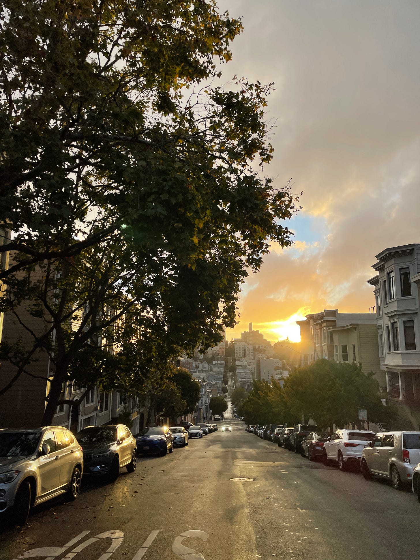We see the day out on the west side of Alamo Square, chasing the sun to different stretches of unoccupied lawn for the sake of me in shorts. The light’s so good and gold and shifting that we get hung up on whether or not there’s a word for the way light can travel like a physical thing, go from ephemeral to bracing, hang from the dogwoods and Monterey cypress and one stubborn willow like garland, in a beat.