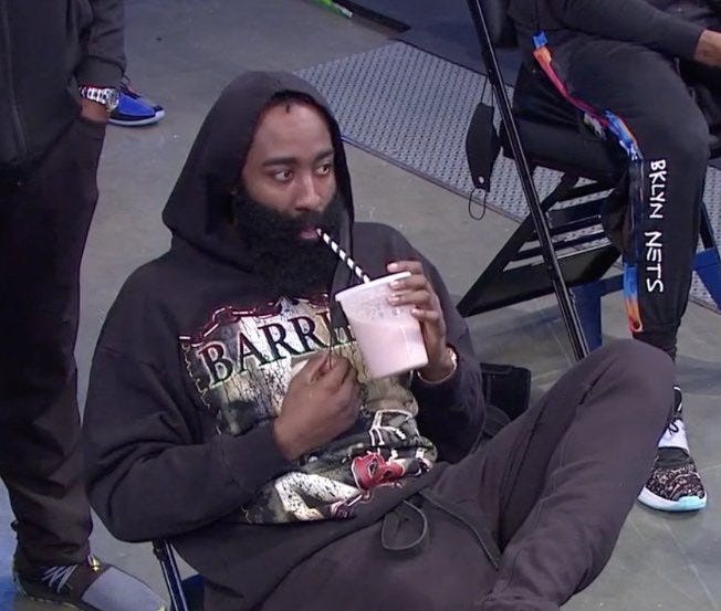 And then it’s Nikola Jokic because it is. It’s Joel Embiid because he’s become his own irresistible force paradox. It’s less Giannis but also why not. It’s Chris Paul’s eternal bossiness rising the Suns. It’s James Harden and that smoothie.