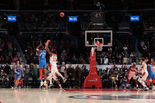 And then there’s SGA in D.C., toying with the Wizards. How happy he is to let their hopes rise, to even out the score with every possession, and cool as his teammates fumble in their attempts to bring the game back. Cool right into the last 2.9 seconds of the game as he steps out for the shot, leaves his arm up as if to point to where it was all the hopes for that night were simultaneously snuffed from the arena.