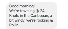 Still, my dad snuck several glimpses. Sending me blurry photos overnight of what looked like spotlights pointed down at the boat, the undersides of bridges, and just blackness, out forever.