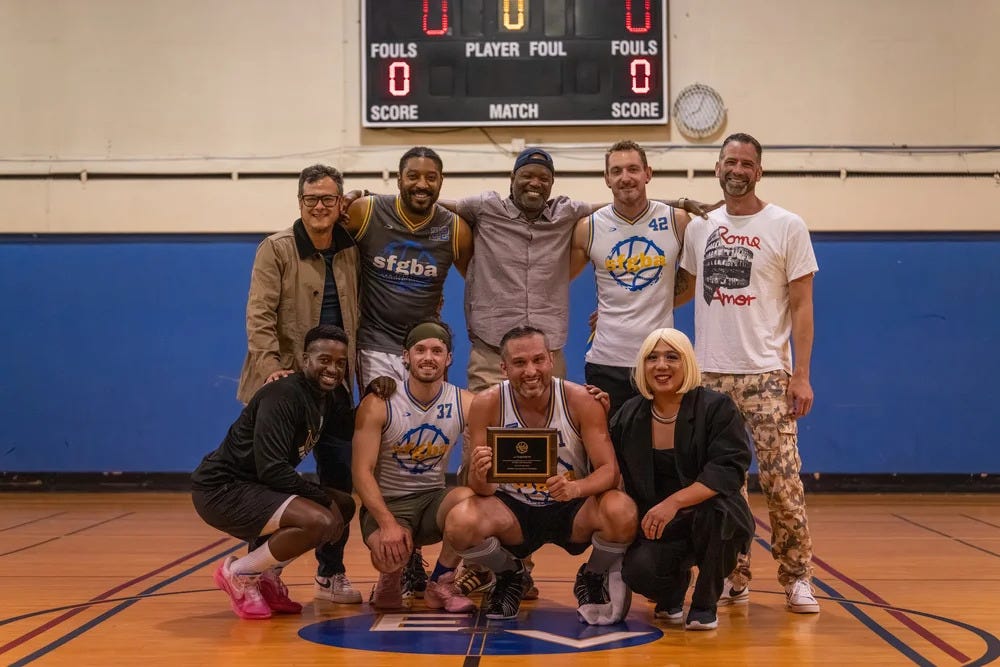 The willingness to repeatedly perform the annoying or mundane tasks of organizing — making sure referees are paid, dry mopping the court between games, creating schedules, sending reminders and planning fundraising events — is a bedrock of the league’s success. To convince people to routinely dedicate a portion of their free time to an organization, especially the over-worked, screen-addled and socially isolated contemporary American adult, you need to make it worth their while. To this end, creating a smoothly running, reliable operation, with all the requisite legwork it entails from league organizers, is nearly as important as the SFGBA’s uniting principles of diversity and inclusion.