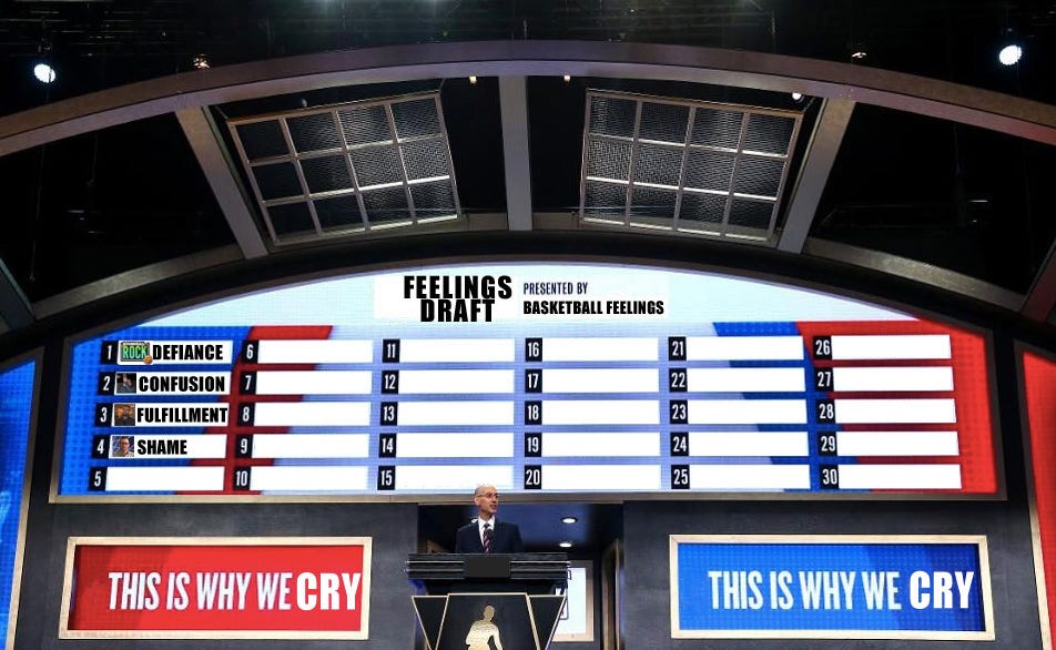 With the 4th pick in the Basketball Feelings Feelings Draft, David Roth selects... SHAME
